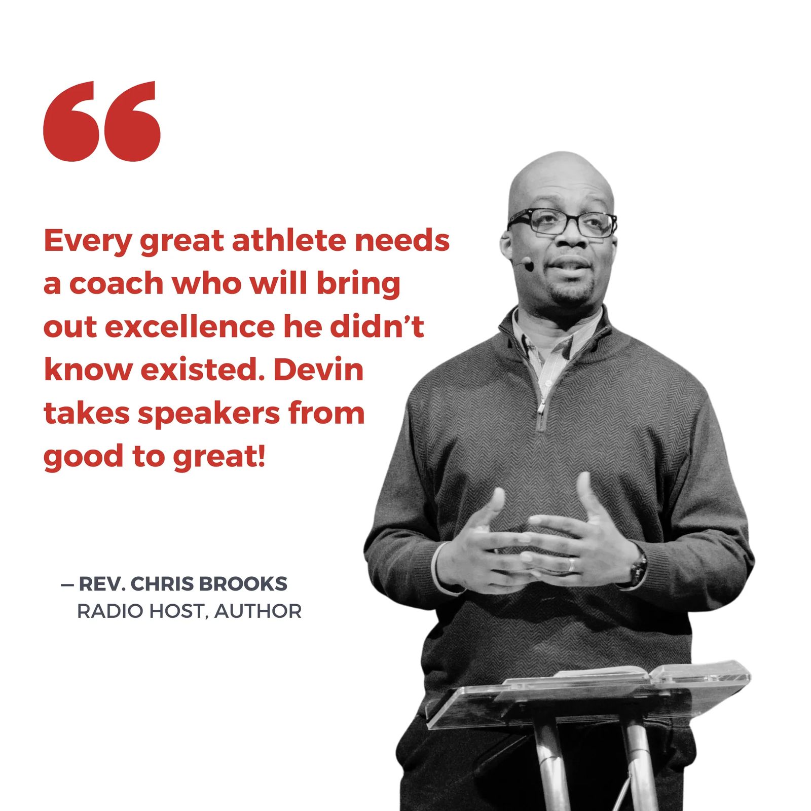 DEVIN D. MARKS one of the nation's leading "short talk" speaker trainers. His firm, CONNECT to COMPEL, has served 100s of speakers — including Harvard’s Dr. Robert Waldinger for his all-time Top 10 TEDx Talk. The result: 100s of millions of views for clients. He helps niche experts, authors, and leaders spread world-changing ideas.