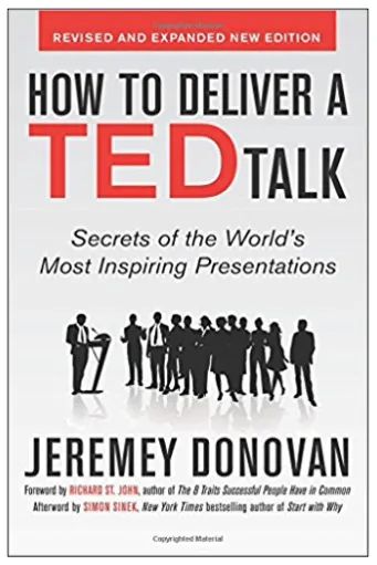 Jeremey Donovan’s, How To Deliver A TED Talk. It offers TEDster students a very granular and technique-focused approach to preparation, rehearsals, and delivery. Donovan comes from the Toastmasters tradition of public speaking and brings that distinct lense to the form. It is a useful primer when read in combination with Gallo. (c) 2013, August